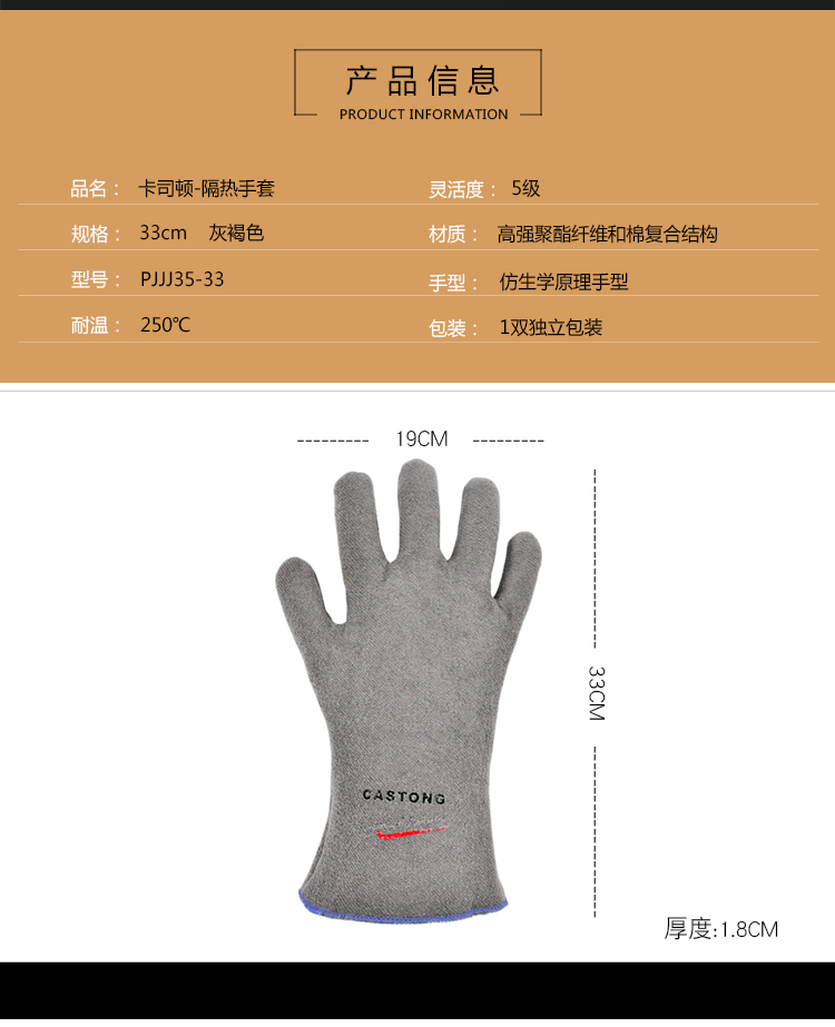 卡司顿耐高温手套 长款耐250度烤箱烘箱隔热防烫加长灵活柔软舒适