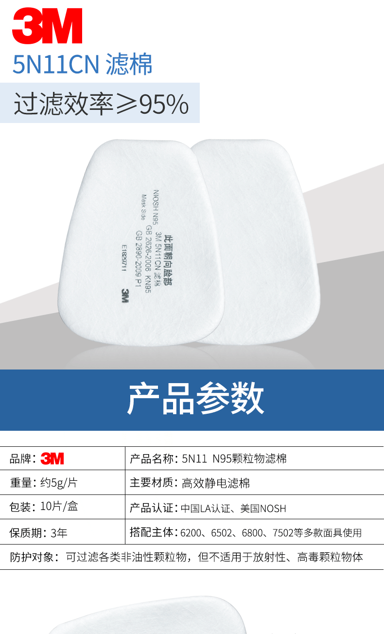 3M5N11过滤棉 防毒面具N95级别滤棉 防固体粉尘颗粒物防飞沫使用
