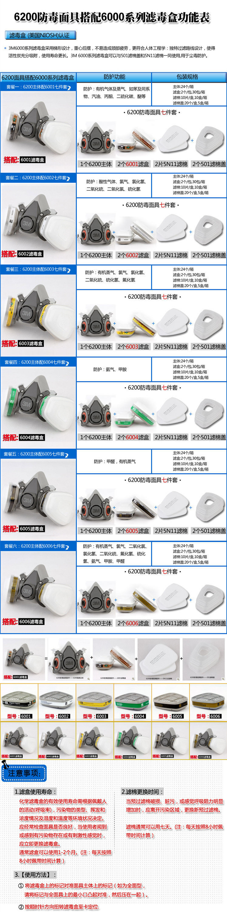 3M6098活性炭滤毒盒 防甲醇二氯乙烷三氯甲烷过滤盒防护面罩滤芯